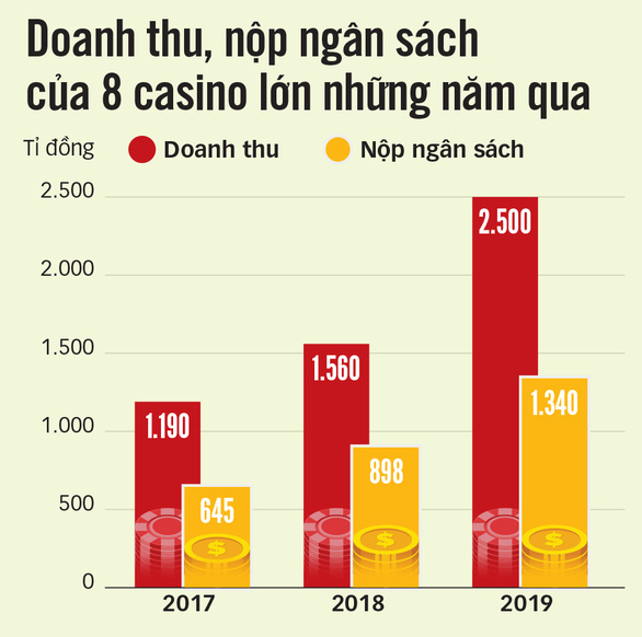 Bộ này cũng cho hay doanh thu của 8 casino đã đi vào hoạt động có tăng trong 3 năm qua nhưng nhiều doanh nghiệp kinh doanh casino thua lỗ ngàn tỷ, cá biệt có đơn vị lỗ 2.500 tỷ đồng dù theo quy định hiện nay, phải đầu tư tổ hợp vui chơi giải trí 2 tỷ USD mới được cấp phép làm casino.