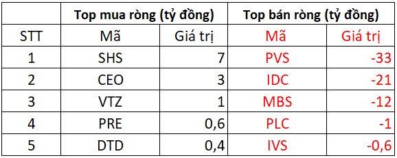 Chiều ngược lại, cổ phiếu PVS bị khối ngoại bán ròng mạnh nhất với giá trị 33 tỷ đồng; theo sau, IDC và MBS cũng bị bán ròng khoảng 12-21 tỷ; PLC và IVS cũng bị bán ròng từ vài trăm tới 1 tỷ đồng mỗi mã.