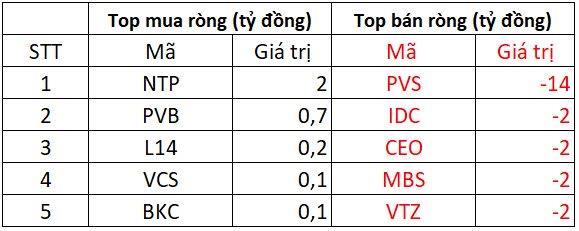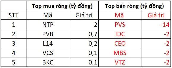 Chiều ngược lại, cổ phiếu PVS bị khối ngoại bán ròng mạnh nhất với giá trị 14 tỷ đồng; theo sau, IDC, CEO, MBS và VTZ cùng bị bán ròng khoảng 2 tỷ đồng mỗi mã.