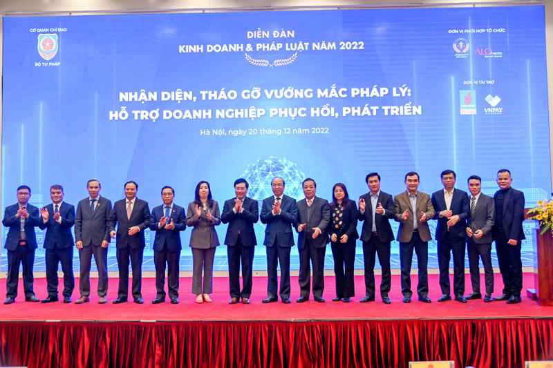 Ngày 20/12, Bộ Tư pháp tổ chức Diễn đàn Kinh doanh và Pháp luật năm 2022 với chủ đề “Nhận diện, tháo gỡ vướng mắc pháp lý: Hỗ trợ doanh nghiệp phục hồi và phát triển”. Diễn đàn có sự tham dự, chỉ đạo của Phó Thủ tướng Thường trực Chính phủ Phạm Bình Minh; sự chủ trì của Bộ trưởng Bộ Tư pháp Lê Thành Long; sự tham gia của lãnh đạo một số ban, bộ, ngành và địa phương, các tổ chức đại diện cho doanh nghiệp, tổ chức hành nghề luật sư, các chuyên gia, nhà khoa học và đại diện các doanh nghiệp trong nhiều ngành nghề, lĩnh vực.