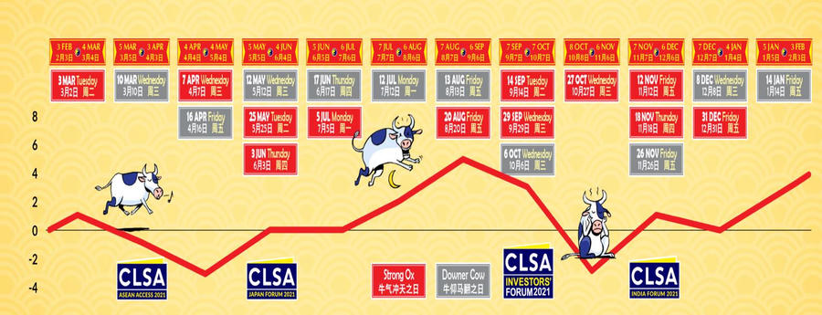 Hàng năm vào cuối tháng 1, hãng môi giới chứng khoán CLSA đều đưa ra phát hành báo cáo chỉ số phong thủy FSI (CLSA Feng Shui Index) để dự báo thị trường chứng khoán năm Tân Sửu dựa trên phong thủy. Đây là năm thứ 27 phát hành báo cáo phong thủy của chỉ số này.