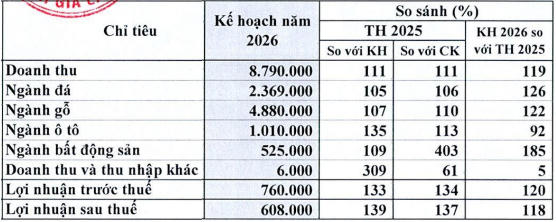 Năm 2026, ban lãnh đạo doanh nghiệp tỏ ra thận trọng khi dự báo tăng trưởng mảng gỗ sẽ chậm lại.