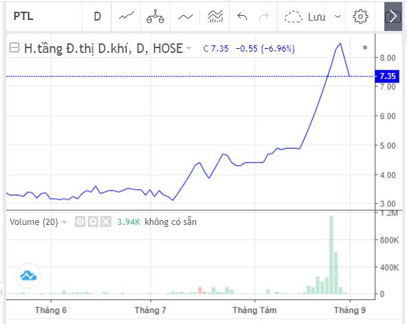 Trước khi PV Oil thoái vốn, cổ phiếu PTL có 7 phiên tăng giá liên tiếp từ 4.870 đồng/cp lên 8.280 đồng/cp, tức tăng 70%. Sau khi PV Oil giao dịch xong, cổ phiếu PTL còn tăng thêm 1 phiên nữa lên 8.490 đồng/cp trước khi giảm sàn 2 phiên liên tiếp về 7.350 đồng/cp.
