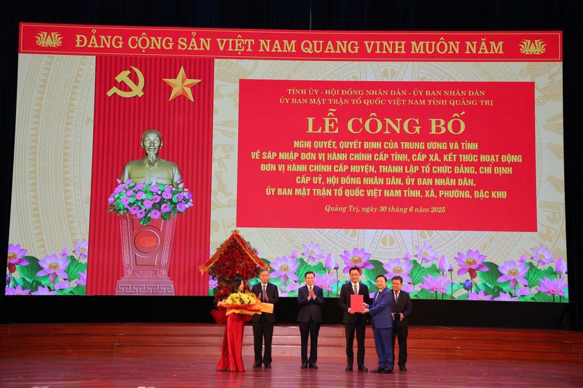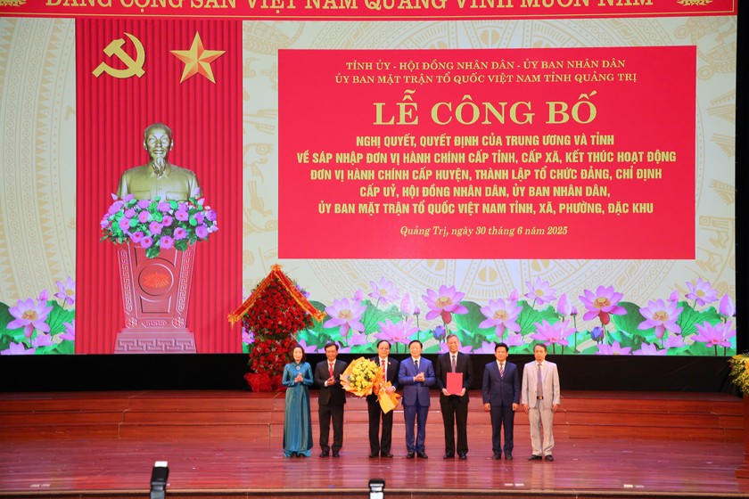 Sáng 30/6, tại Hội trường Trung tâm Văn hóa và Điện ảnh tỉnh Quảng Trị đã diễn ra Lễ công bố các nghị quyết, quyết định của Trung ương và tỉnh về sáp nhập đơn vị hành chính cấp tỉnh, cấp xã, kết thúc hoạt động đơn vị hành chính cấp huyện, thành lập tổ chức đảng, chỉ định cấp ủy, HĐND, UBND, UBMTTQ Việt Nam tỉnh và xã, phường, đặc khu thuộc tỉnh Quảng Trị (mới).