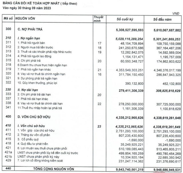 Tổng nợ phải trả của QCG giảm nhẹ 5% về 5.308 tỷ đồng, trong đó chủ yếu là nợ ngắn hạn với 5.029 tỷ đồng, nợ dài hạn là 279,4 tỷ đồng. Tổng vay nợ ngắn và dài hạn giảm 3 tỷ đồng so với đầu năm, về mức 589,9 tỷ đồng.