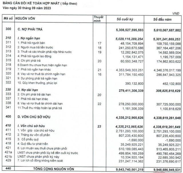 Dù giảm 34%, song tính đến ngày 30/9/2023, QCG vẫn còn 241 tỷ đồng ở phần người mua trả tiền trước ngắn hạn.