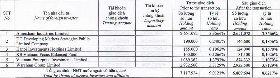 Cụ thể, từ ngày 16 - 24/11, thông qua 3 quỹ thành viên là DC Developing Markets Strategies Public Limited Company, Hanoi Investments Holdings Limited và KB Vietnam Focus Balanced Fund, Dragon Capital đã bán tới gần 1,4 triệu cổ phiếu FRT.