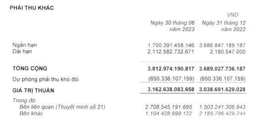 Tân Tạo thuyết minh biến động các khoản phải thu chủ yếu là phải thu khác ngắn hạn giảm từ 3.686,8 tỷ đồng, xuống 1.700,4 tỷ đồng; phải thu khác dài hạn tăng từ 2,18 tỷ đồng, lên 2.112,58 tỷ đồng.