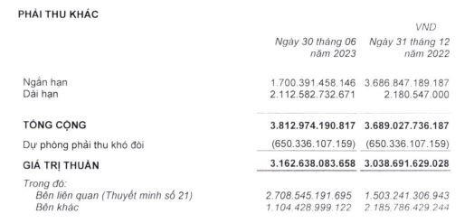Trong kỳ, tài sản biến động mạnh chủ yếu các khoản phải thu ngắn hạn giảm 56,7% so với đầu năm, tương ứng giảm 2.033,84 tỷ đồng, xuống còn 1.556 tỷ đồng; các khoản phải thu dài hạn tăng thêm 2.110,4 tỷ đồng, lên 2.112,6 tỷ đồng (đầu kỳ là 2,2 tỷ đồng) …