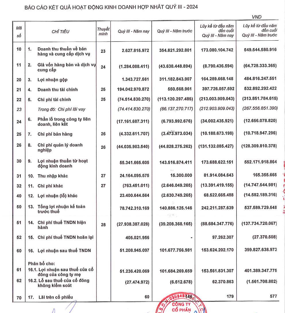Quý III/2024, Bất động sản Phát Đạt (PDR) báo lãi 51 tỷ đồng, giảm 50% so với cùng kỳ