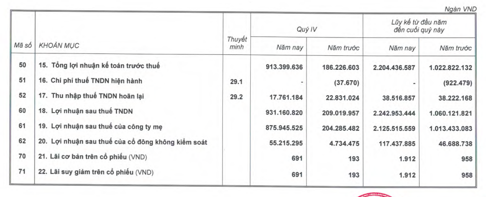 Khấu trừ chi phí, HAGL ghi nhận lợi nhuận sau thuế quý IV/2025 đạt tới 931 tỷ đồng, gấp hơn 4 lần cùng kỳ. Doanh nghiệp cho biết lợi nhuận tài chính trong kỳ tăng hơn 1.000 tỷ đồng, chủ yếu đến từ khoản lãi trái phiếu được miễn giảm.