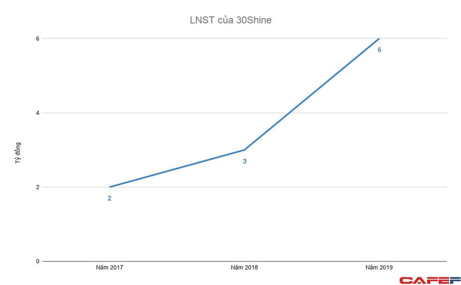 Cho dù biên lãi gộp ở mức không tồi, nhưng với kinh doanh chuỗi chi phí thuê mặt bằng tốt và trả lương nhân viên, cộng thêm hoạt động truyền thông mạnh mẽ của công ty này khiến cho lợi nhuận ròng cuối cùng không đáng kể. Lợi nhuận năm 2019 chỉ vỏn vẹn 6 tỷ đồng, tỷ suất 1%. Tức là, 30Shine thu 100 đồng mới lãi 1 đồng.