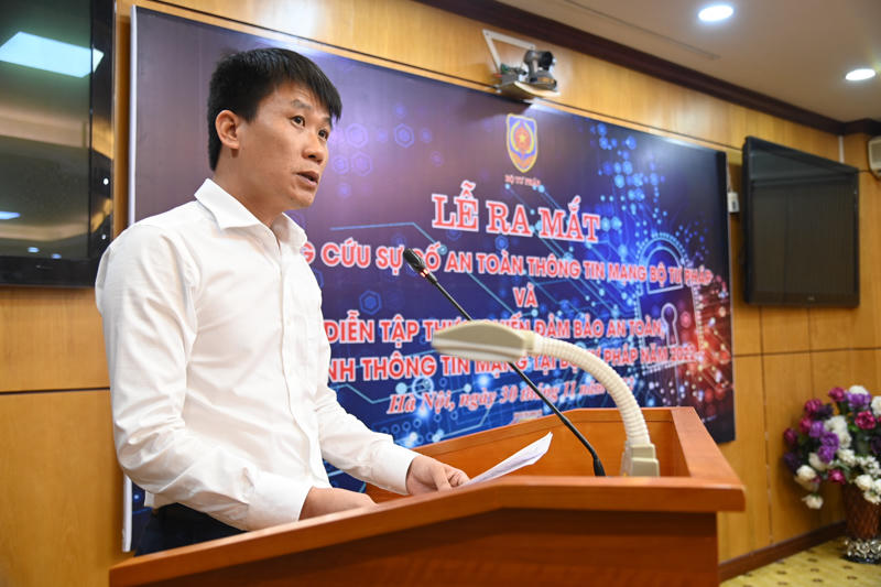 Phát biểu khai mạc buổi Lễ, Phó Cục trưởng Cục Công nghệ thông tin Phạm Đức Dụ cho biết, với 36 hệ thống thông tin, cơ sở dữ liệu của Bộ, ngành Tư pháp, công tác an toàn thông tin mạng nói chung và công tác đảm bảo an toàn thông tin mạng của Bộ nói riêng là trụ cột quan trọng, xuyên suốt để tạo lập niềm tin số và bảo vệ sự phát triển thịnh vượng của đất nước trong kỷ nguyên số.