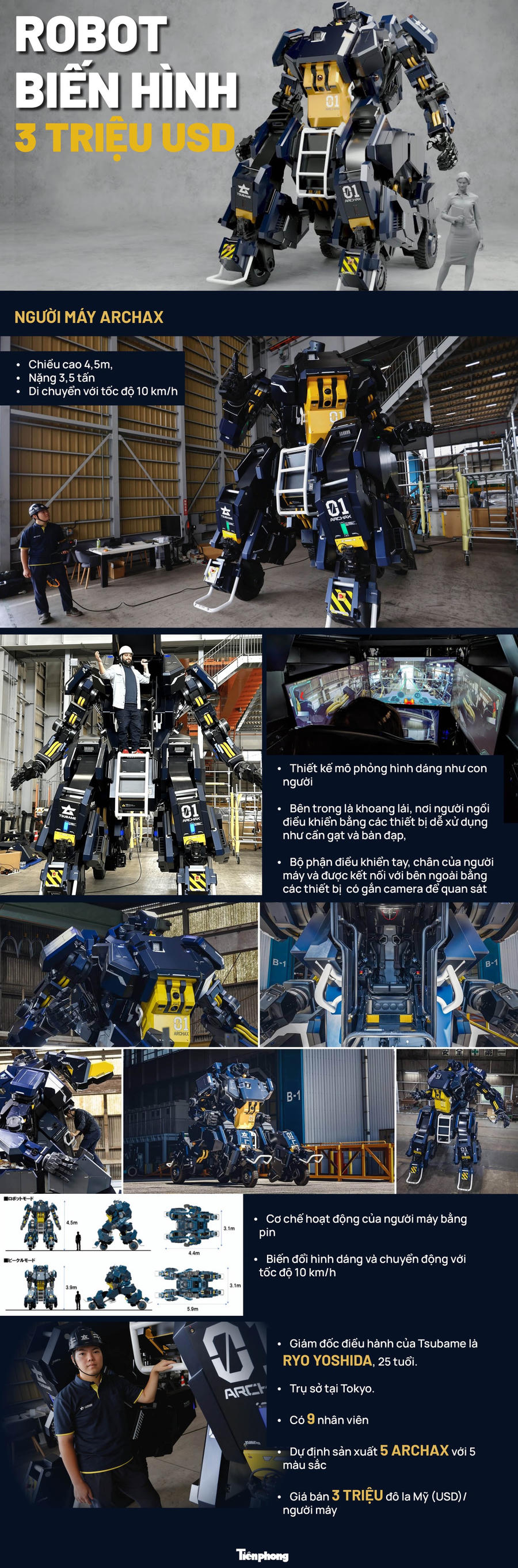 Giám đốc điều hành của ngành công nghiệp Tsubame là Ryo Yoshida, 25 tuổi. Công ty sản xuất người máy này có trụ sở đặt tại Tokyo. Công ty có 9 nhân viên và dự định sẽ sản xuất 5 người máy Archax với 5 màu sắc khác nhau với giá bán 3 triệu đô la Mỹ (USD)/ chiếc.
