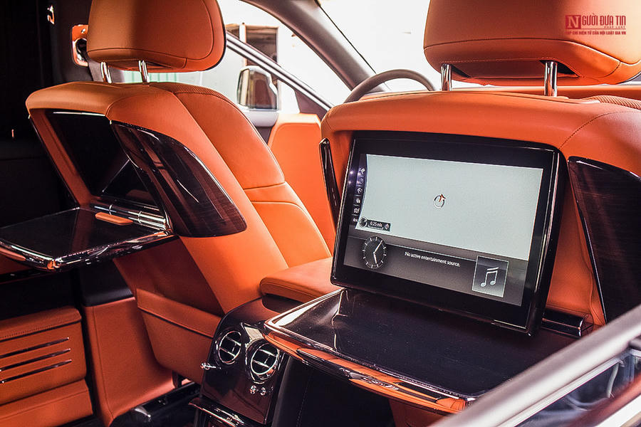 Chiếc Rolls Royce Phantom VIII mới về Việt Nam sử dụng ghế ngồi bọc da màu vàng đồng với đầy đủ các chức năng như sưởi ấm, làm mát, massage,...