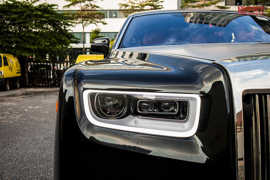 "Cặp mắt" của chiếc xe hơi mới này sử dụng công nghệ Laser hiện đại mang đến khả năng chiếu sáng tối ưu. Ngoài ra, phần đầu xe Rolls-Royce Phantom VIII còn sở hữu hàng loạt cảm biến, camera hỗ trợ an toàn.
