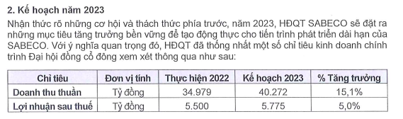 Trên cơ sở những nhận định trên, SAB đặt tham vọng doanh thu thuần đạt 40.272 tỷ đồng, tăng 15% so với thực hiện năm 2022. Lãi sau thuế dự kiến tăng 5%, lên 5.775 tỷ đồng.