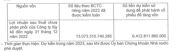 Nguồn thực hiện lấy từ lợi nhuận sau thuế chưa phân phối tại ngày 31/12/2022 theo báo cáo tài chính riêng lẻ đã được kiểm toán, vào khoảng hơn 13.073 tỷ đồng.