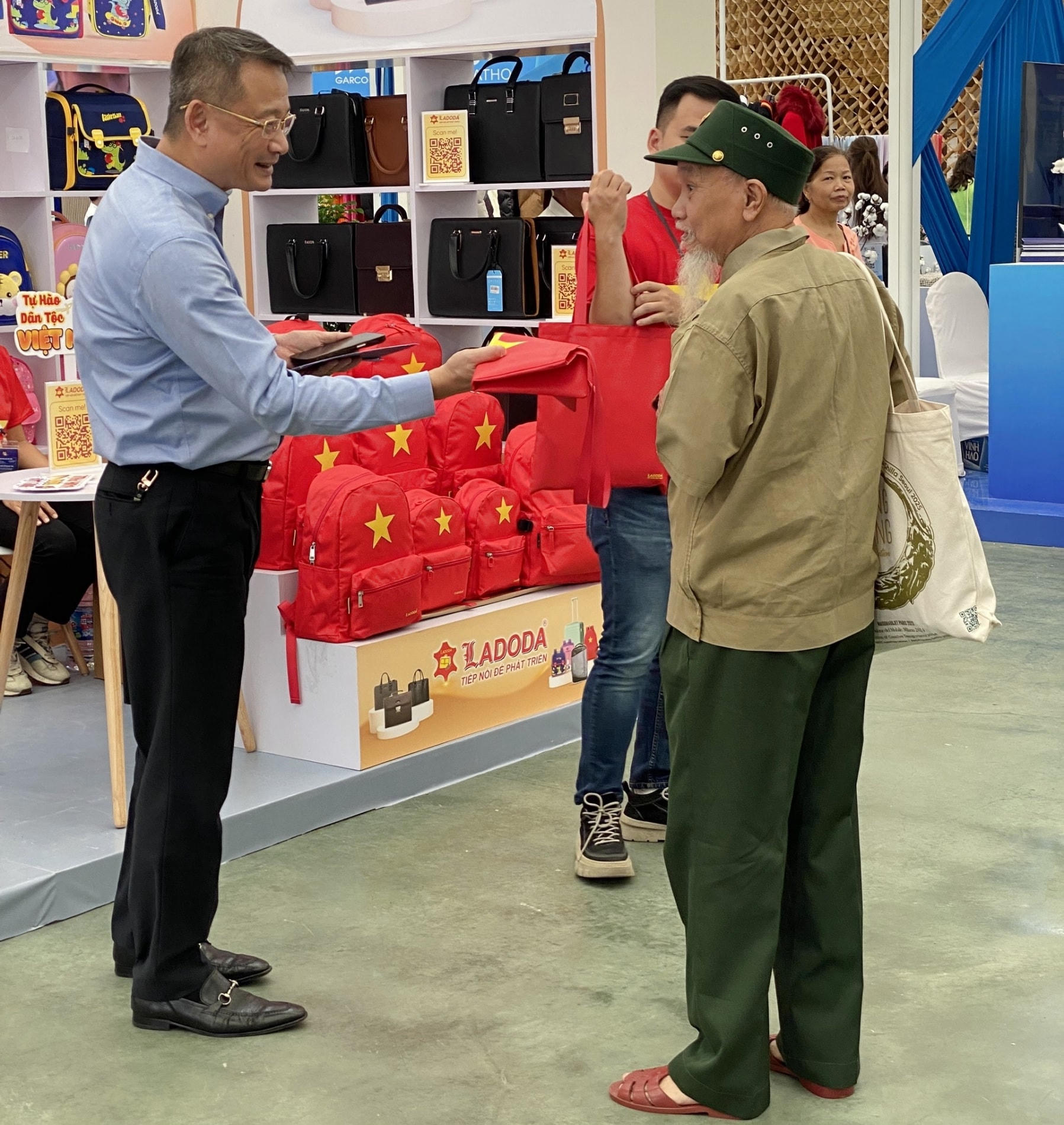 Điểm khởi nguồn của hình ảnh đẹp này đến từ gian hàng của LADODA, một thương hiệu đồ da Việt Nam có lịch sử hơn 30 năm. Ngay trong ngày đầu tiên của triển lãm, doanh nghiệp đã khởi động chương trình cộng đồng "Đeo 'túi tự hào', Vi vu Quốc khánh" và dành tặng 2.000 chiếc túi cho khách tham quan. Rất nhanh chóng, những chiếc túi này đã theo chân người dân đi khắp các khu trưng bày, tạo nên một sự kết nối cộng đồng một cách tự nhiên và đầy ý nghĩa.