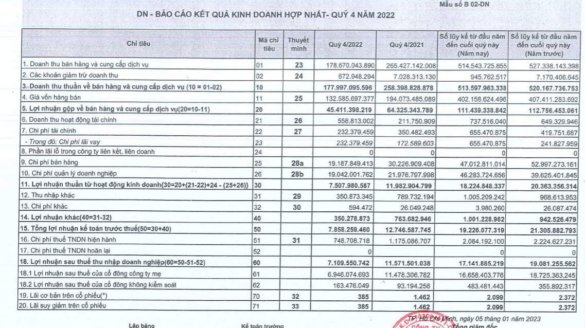 Về kết quả kinh doanh, quý IV/2022, STC ghi nhận doanh thu đạt 177,9 tỷ đồng, giảm 31% so với cùng kỳ. Lợi nhuận trước thuế đạt 7,8 tỷ đồng, giảm 38% so với quý IV/2021.