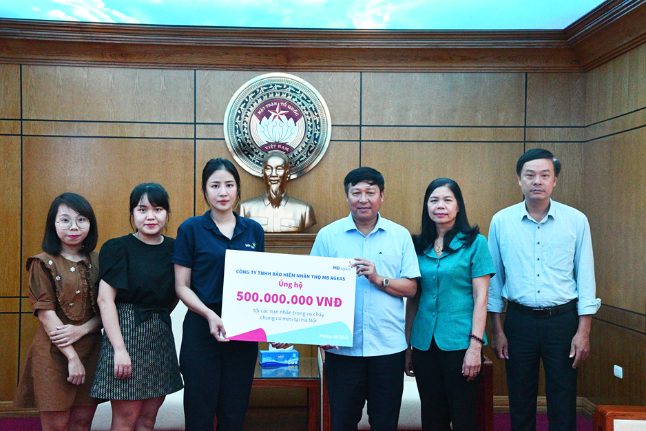 Vừa qua, tại trụ sở Ủy ban Mặt trận Tổ quốc thành phố Hà Nội, đại diện Công ty Bảo hiểm nhân thọ MB Ageas Life đã gửi tặng 500 triệu đồng hỗ trợ các gia đình gặp nạn vụ cháy chung cư mini ở Khương Hạ.