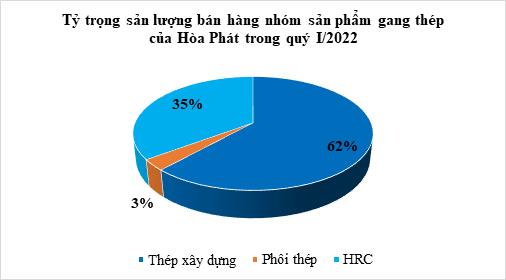 Trong đó, thép xây dựng thành phẩm là 1,34 triệu tấn, tăng 57%. Thép cuộn cán nóng của Hòa Phát trong 3 tháng đầu năm đạt 763.000 tấn, tăng 15% so với cùng kỳ 2021.