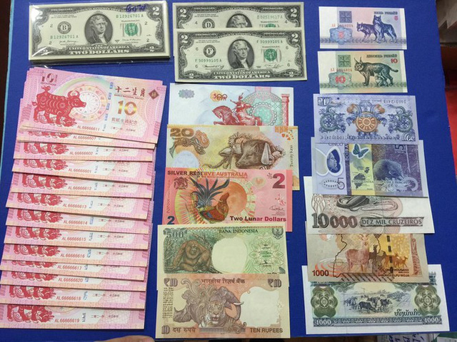 Bộ tiền giấy 12 con giáp và các bộ tiền tổng hợp từ nhiều quốc gia có giá 400.000 đến ngót nghét 1 triệu đồng/ bộ. Theo giới thiệu của người bán, đây đều là tiền thật, là những đồng giá trị nhỏ, còn mới 100%. Trong đó, tờ tiền hình trâu của Lào mang ý nghĩa siêng năng kiên nhẫn, đặc biệt hút khách trong năm mới Tân Sửu.