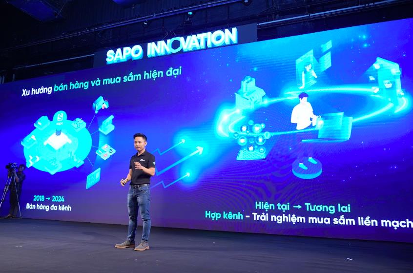 Ông Nguyễn Minh Quý, Giám đốc Phát triển sản phẩm của Sapo chính thức giới thiệu ra thị trường Nền tảng quản lý và bán hàng hợp kênh Sapo OmniAI, tận dụng sức mạnh của Headless Commerce và công nghệ trí tuệ nhân tạo (AI) để tạo ra một phiên bản Sapo hoàn toàn vượt trội.