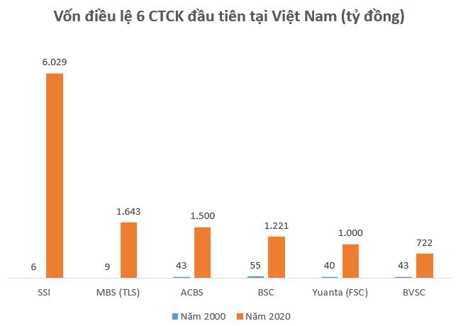 Trong đó, SSI đã trở thành CTCK có quy mô vốn lớn nhất Việt Nam với vốn điều lệ hiện lên tới hơn 6.000 tỷ đồng. TLS sau khi đổi tên thành MBS cũng tăng vốn lên hơn 1.600 tỷ đồng, FSC sau khi được Yuanta mua lại cũng tăng vốn lên 1.000 tỷ đồng. CTCK có quy mô nhỏ nhất trong 6 cái tên lâu đời nhất tại Việt Nam hiện là BVSC với quy mô hơn 720 tỷ đồng.