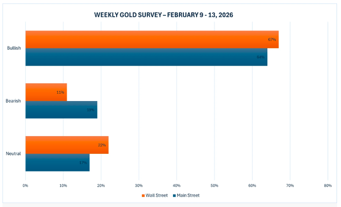 Khảo sát dự báo giá vàng tuần tới của Kitco cho thấy Phố Wall đã lấy lại niềm tin vào sức mạnh ngắn hạn của vàng, trong khi nhà đầu tư cá nhân vẫn giữ đa số quan điểm lạc quan, dù còn chịu ảnh hưởng từ cú giảm tuần trước.