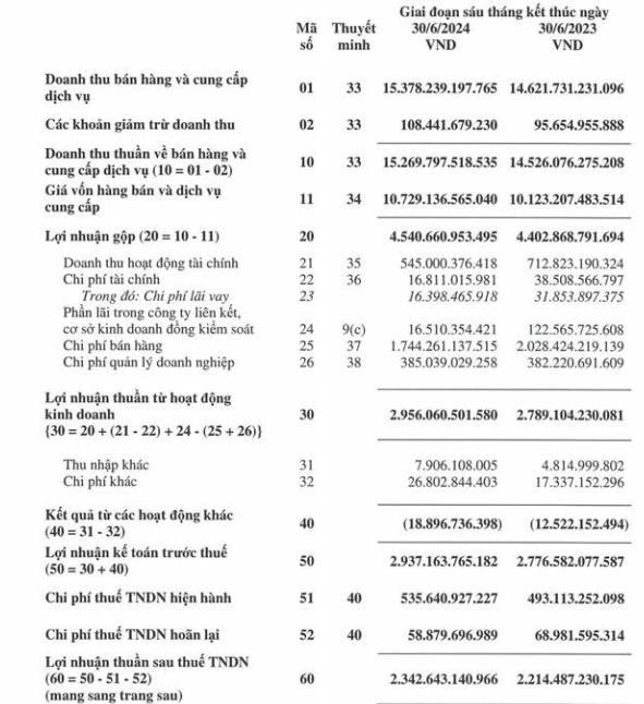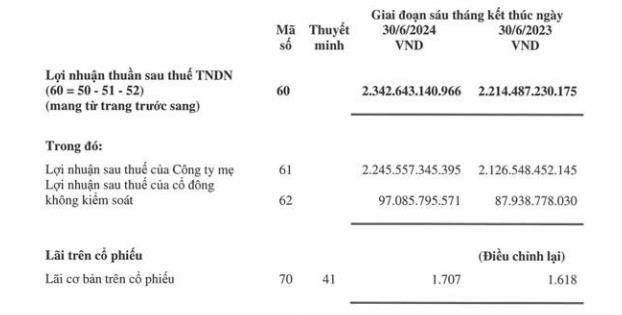 Lợi nhuận sau thuế đạt 2.342,6 tỷ đồng, tăng 5,8% so với cùng kỳ năm trước.