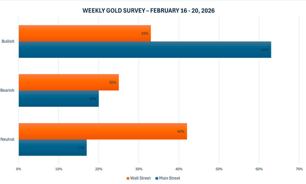 Khảo sát vàng hàng tuần mới nhất của Kitco News cho thấy, phần lớn các chuyên gia Phố Wall vẫn đang lưỡng lự về triển vọng ngắn hạn của vàng, trong khi các nhà đầu tư nhỏ lẻ vẫn duy trì đa số lạc quan như tuần trước bất chấp những biến động trong tuần.