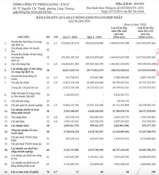 Về kết quả kinh doanh, tính chung 9 tháng đầu năm 2024, TTL ghi nhận 1.364 tỷ đồng doanh thu thuần, tăng 34% so với cùng kỳ năm trước.