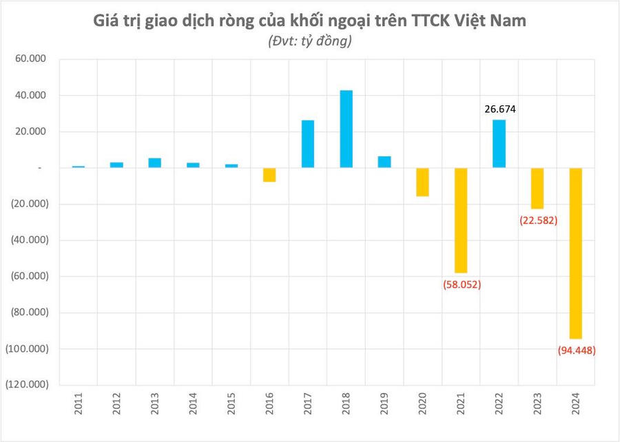 Khối ngoại vẫn gây áp lực lên TTCK 2025