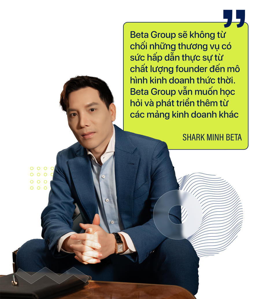 “Dịch vụ vẫn là mảng then chốt của Beta Group. Nhưng Beta Group sẽ không từ chối những thương vụ có sức hấp dẫn thực sự từ chất lượng founder đến mô hình kinh doanh thức thời. Beta Group vẫn muốn học hỏi và phát triển thêm từ các mảng kinh doanh khác”, Shark Minh Beta bày tỏ.