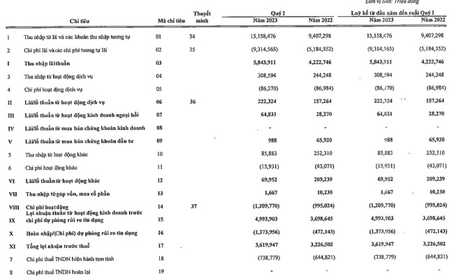 Báo cáo tài chính quý I/2023 của SHB thu nhập lãi thuần tăng đến 38% so với cùng kỳ, đạt gần 5.844 tỷ đồng.