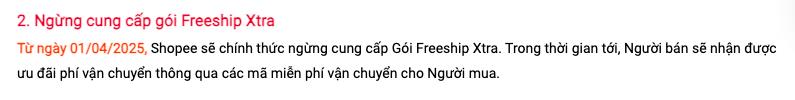 Ngoài ra, sàn thương mại điện tử Shopee cũng thông báo huỷ bỏ các gói Freeship Extra, đồng thời áp dụng mã Freeship cho tất cả các shop nhưng lại giới hạn số lượng mã miễn phí vận chuyển.