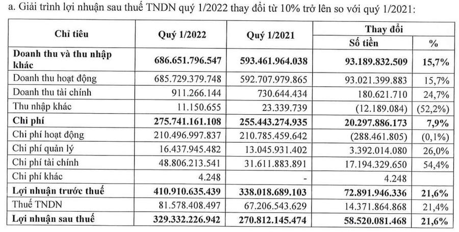 SHS ghi nhận lãi ròng tăng 22% đạt 329 tỷ đồng trong quý I/2022