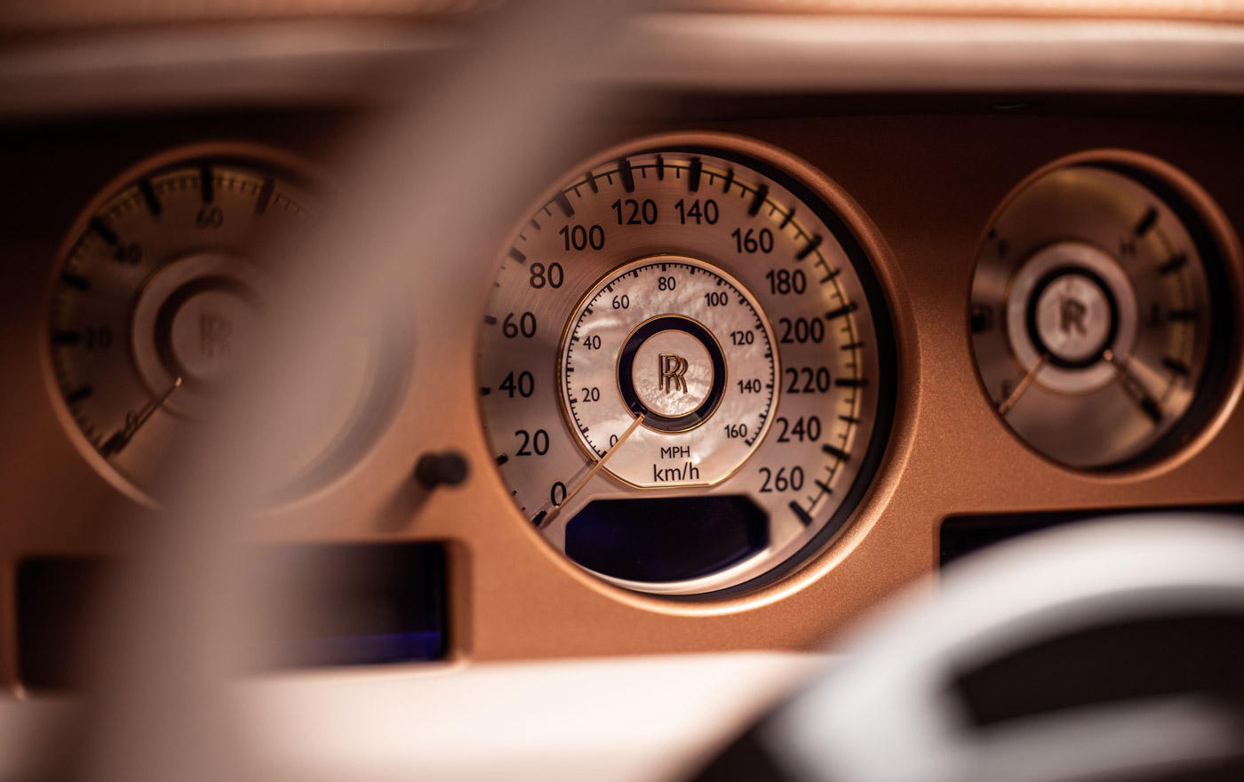 Để tăng dấu ấn cá nhân, bộ đồng hồ nằm trên bảng điều khiển được chế tác từ vỏ ngọc trai trong bộ sưu tập của chủ xe. Những chiếc đồng hồ này được thiết kế tối giản về ngoại hình để phù hợp với phần nội thất.