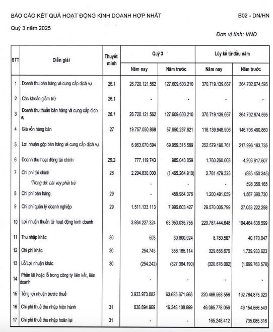 CTCP SJ Group (mã ck: SJS) công bố tình hình kinh doanh quý III/2025 với bức tranh phủ màu xám.