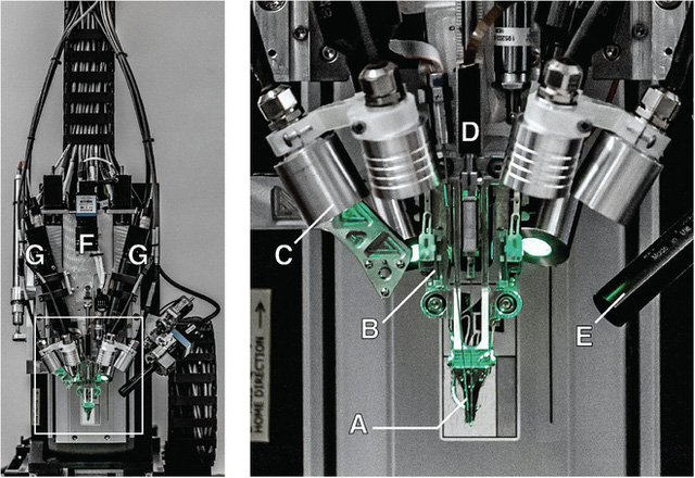 Neuralink phát triển những cách tay robot phẫu thuật thần kinh bằng laser độ chính xác cao để làm điều này. Các cách tay robot bề ngoài nhìn có vẻ to lớn và nặng nề, nhưng chúng có thể chèn tới 6 luồng với 192 điện cực vào bề mặt não mỗi phút với độ chính xác đạt tới cỡ phần nghìn milimet - điều mà không một bác sĩ phẫu thuật thần kinh nào hiện có thể làm được.