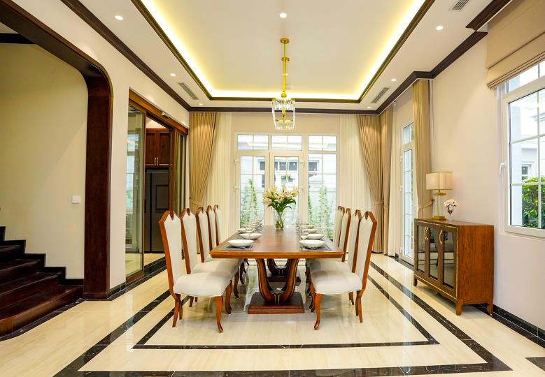 Với diện tích sàn xây dựng tiêu chuẩn 345m2, chiều cao 3 tầng 1 tum, các căn biệt thự tối ưu không gian sinh hoạt, giúp gia chủ linh hoạt bố trí các phòng chức năng.