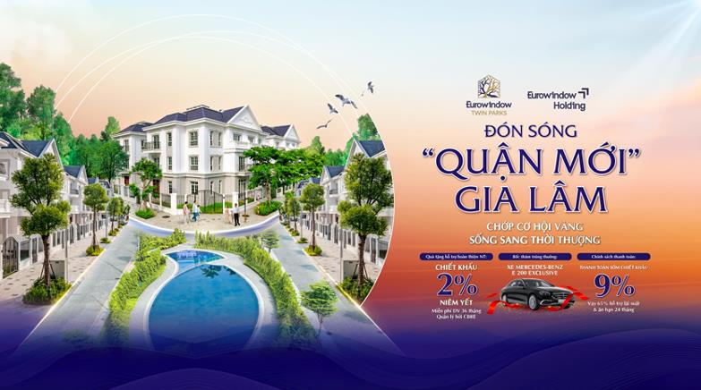 Nổi bật trong đó, Eurowindow Twin Parks là khu đô thị tọa lạc tại trung tâm Gia Lâm, cách Vinhomes Ocean Park chỉ 500m, được nhiều khách hàng thượng lưu quan tâm lựa chọn. Dự án mang đến bộ sưu tập bất động sản cao cấp bao gồm shophouse, liền kề và đặc biệt là dòng sản phẩm biệt thự sang trọng, đáp ứng tiêu chí của cộng đồng tinh hoa, nhất là trong bối cảnh Gia Lâm chuẩn bị lên quận vào năm 2025.