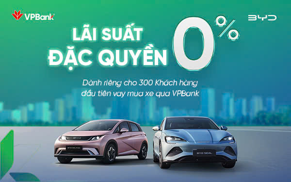 Đón đầu xu thế sống xanh và phát triển bền vững, từ ngày 18 tháng 4 đến hết ngày 31 tháng 5, Ngân hàng TMCP Việt Nam Thịnh Vượng (VPBank) và BYD triển khai chương trình Đặc quyền lãi suất 0% mang đến ưu đãi tài chính đột phá dành riêng cho 300 khách hàng đầu tiên mua một trong những mẫu xe năng lượng mới của BYD.