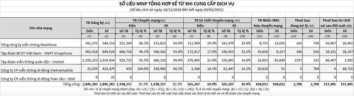 Trước đó, theo số liệu của Cục Viễn thông, sau hai năm (chính thức từ ngày 16/11/2018) triển khai dịch vụ chuyển mạng giữ số đã có 1.957.040 thuê bao thực hiện thành công, đạt tỷ lệ 92,9%. Tính chung cả nước có 2.777.582 thuê bao đăng ký chuyển mạng giữ số, trong đó có 1.957.040 thuê bao thực hiện thành công, đạt tỷ lệ 92,9%.