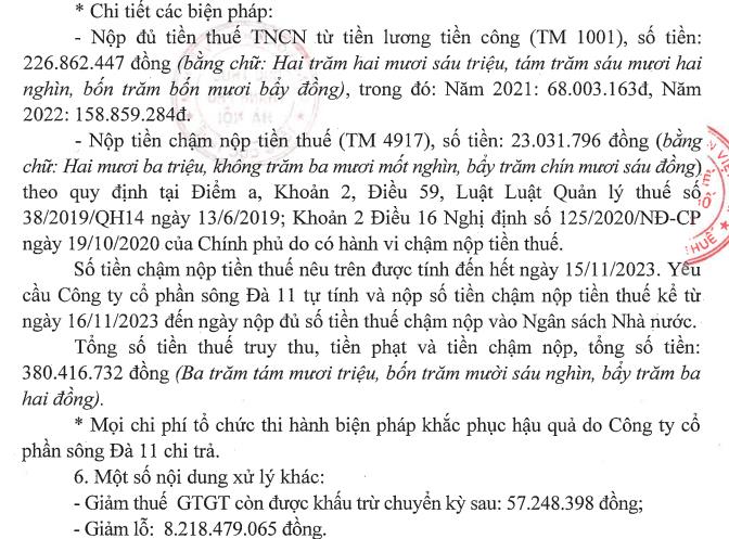 Sông Đà 11 (SJE) bị phạt và truy thu hơn 380 triệu đồng tiền thuế