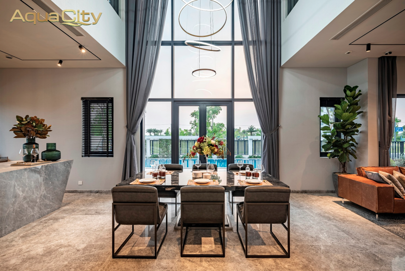 Không gian sống tại đảo Phượng Hoàng, Aqua City có thiết kế sang trọng, hài hòa thiên nhiên, mang đến trải nghiệm sống như nghỉ dưỡng mỗi ngày.
