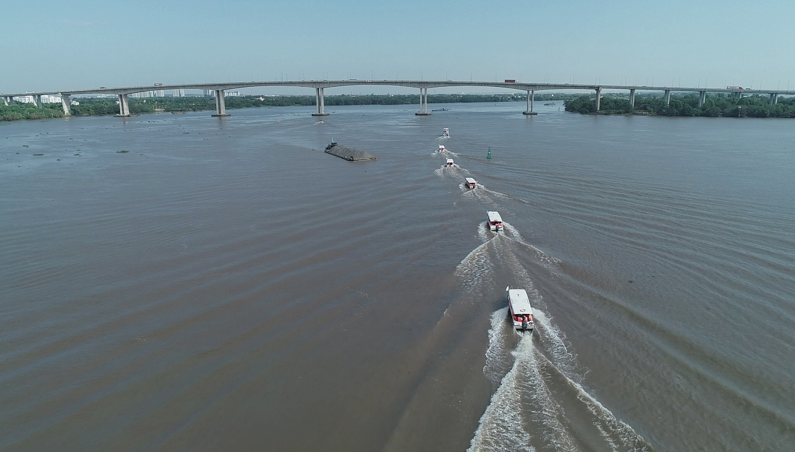 Thay vì chọn phương tiện di chuyển bằng đường bộ, gia đình chị Hòa (quận 7, TP HCM) chọn tour đường thủy để cảm nhận thực tế không gian sông nước sinh thái của đảo Phượng Hoàng tại sự kiện Khai trương nhà mẫu được tổ chức sáng 27/2.