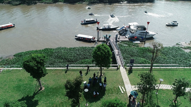 Sau những phút giây thư thái thưởng ngoạn cung đường sông thơ mộng Sài Gòn - Đồng Nai, gia đình chị Hòa đã đặt chân đến không gian sinh thái sông nước tại Aqua City.