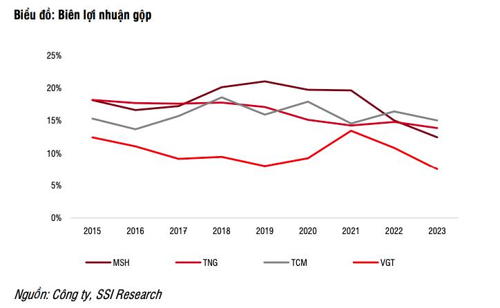 Đơn vị này kỳ vọng MSH, TNG và TCM sẽ đạt mức tăng trưởng lợi nhuận lần lượt là 18%, 15%, và 15% so với cùng kỳ, thấp hơn so với mức CAGR trung bình lịch sử là 24% trong giai đoạn 2015-2019, khi biên lợi nhuận gộp trung bình giảm 500 điểm cơ bản, khi biên lợi nhuận gộp của nhà bán lẻ giảm.